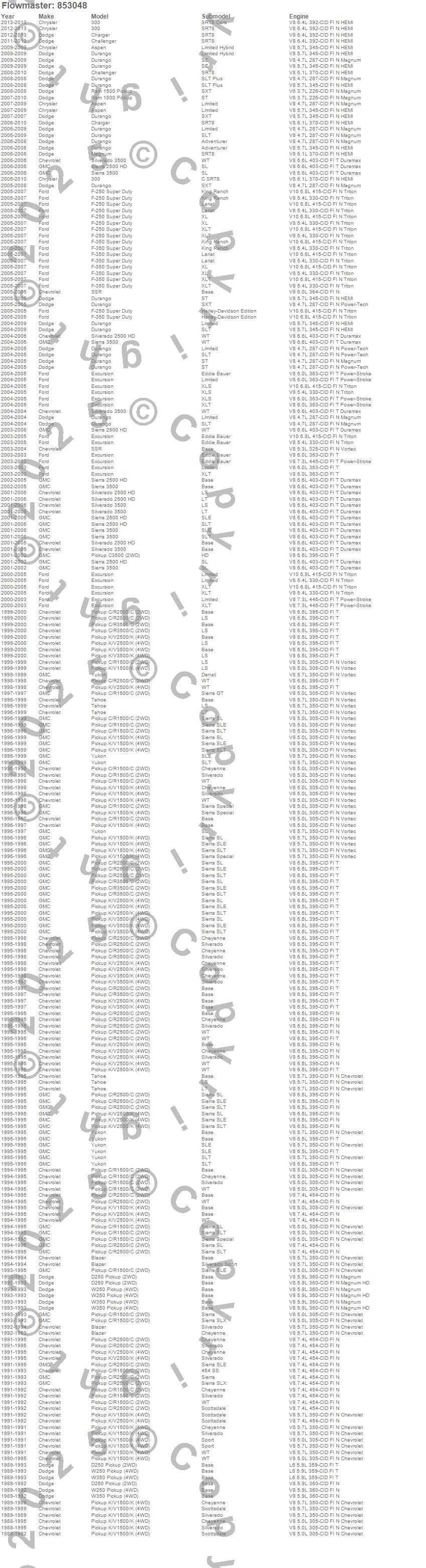 Below is an abreviated list of applications for the Super 40 Delta Flow Muffler.