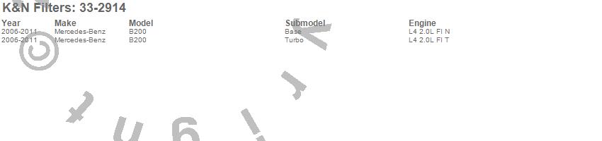 Below is an abreviated list of applications for the Air Filter.