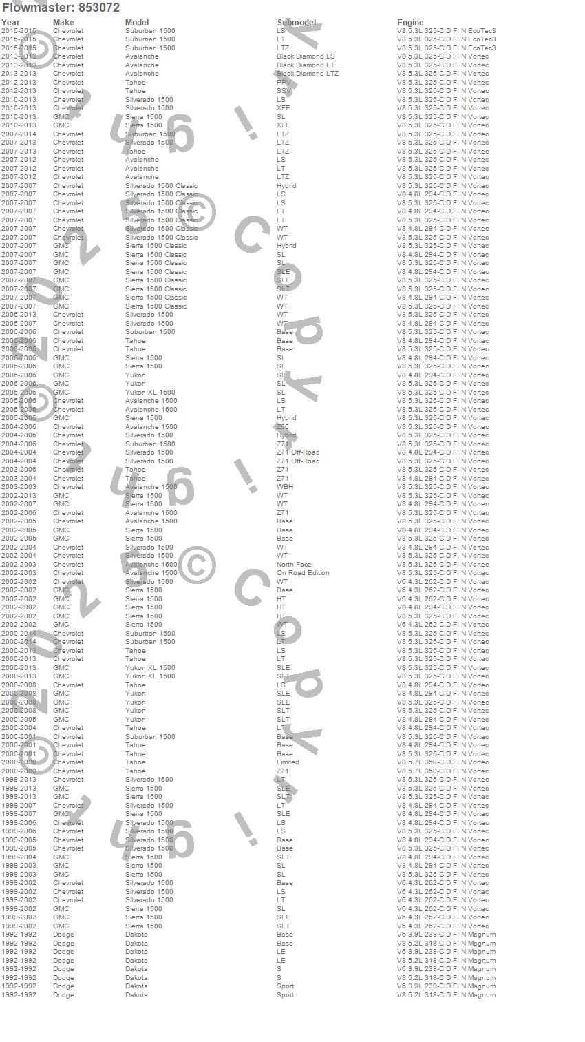 Below is an abreviated list of applications for the 70 Series Big Block II Muffler.