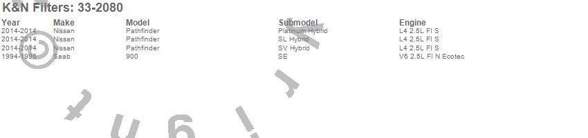 Below is an abreviated list of applications for the Air Filter.