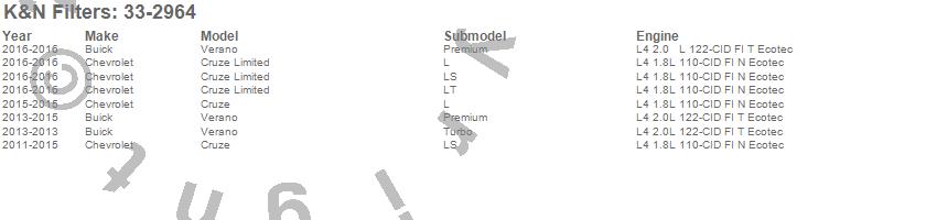 Below is an abreviated list of applications for the Air Filter.
