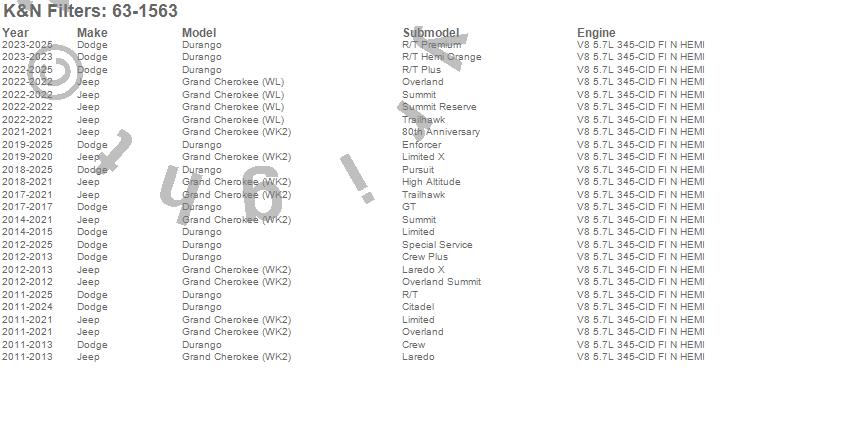 Below is an abreviated list of applications for the 63 Series Aircharger Kit.
