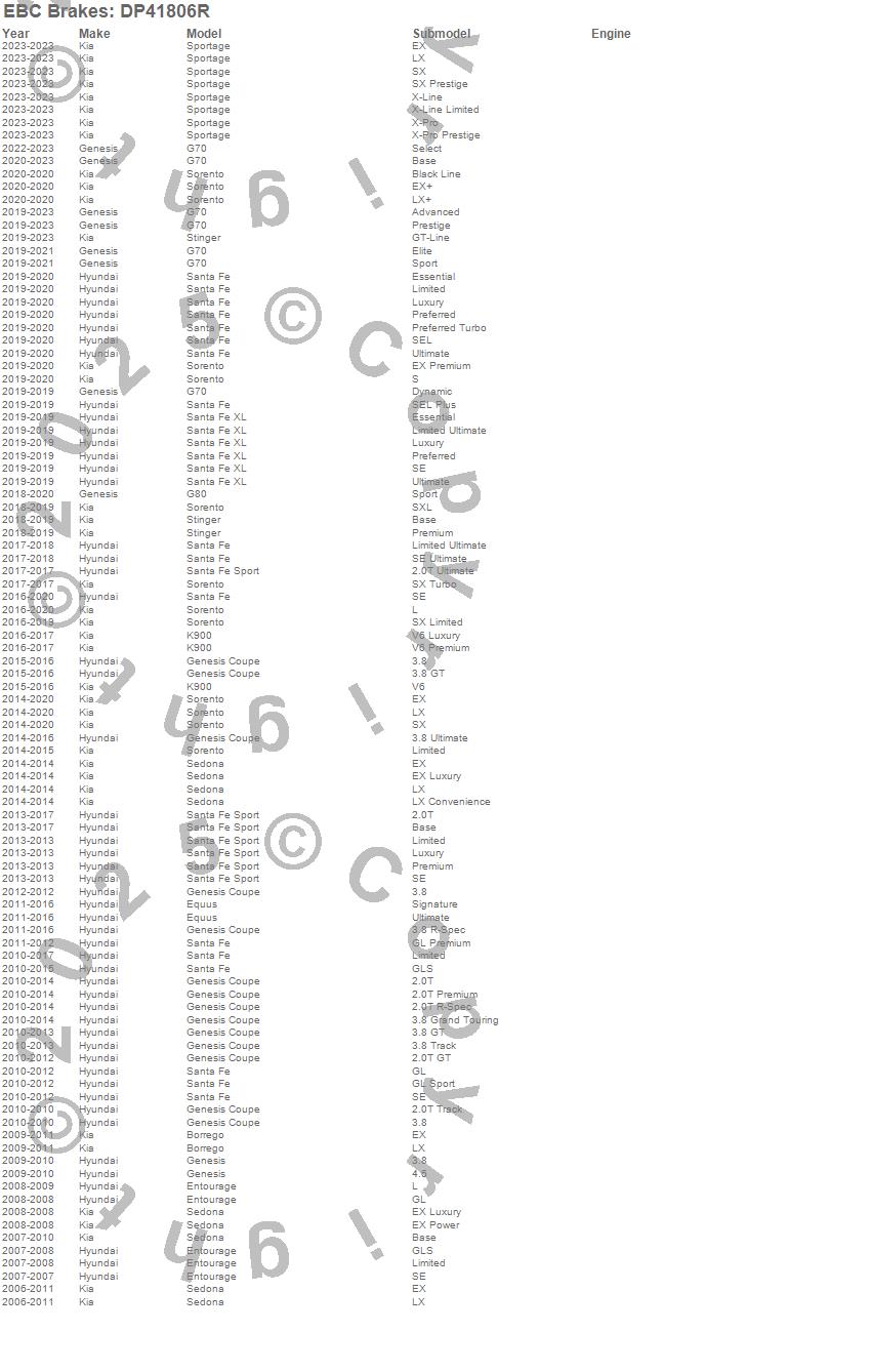 Below is an abreviated list of applications for the Yellowstuff Street And Track Brake Pads. Borrego, Entourage, Equus, Genesis, Genesis Coupe, Santa Fe, Sedona, Sorento, Hyundai, Kia, 2015, 2014, 2013, 2012, 2011, 2010, 2009, 2008, 2007, 2006 more…