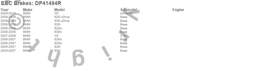 Below is an abreviated list of applications for the Yellowstuff Street And Track Brake Pads. 525i, 525xi, 528i, 528i xDrive, 528xi, 530i, 530xi, 535i xDrive, 535xi, X5, BMW, 2010, 2009, 2008, 2007, 2006, 2005, 2004 more…