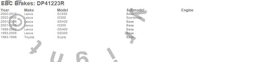 Below is an abreviated list of applications for the Yellowstuff Street And Track Brake Pads. GS300, GS400, GS430, IS300, SC430, Supra, Lexus, Toyota, 2010, 2009, 2008, 2007, 2006, 2005, 2004, 2003, 2002, 2001, 2000, 1999 more…
