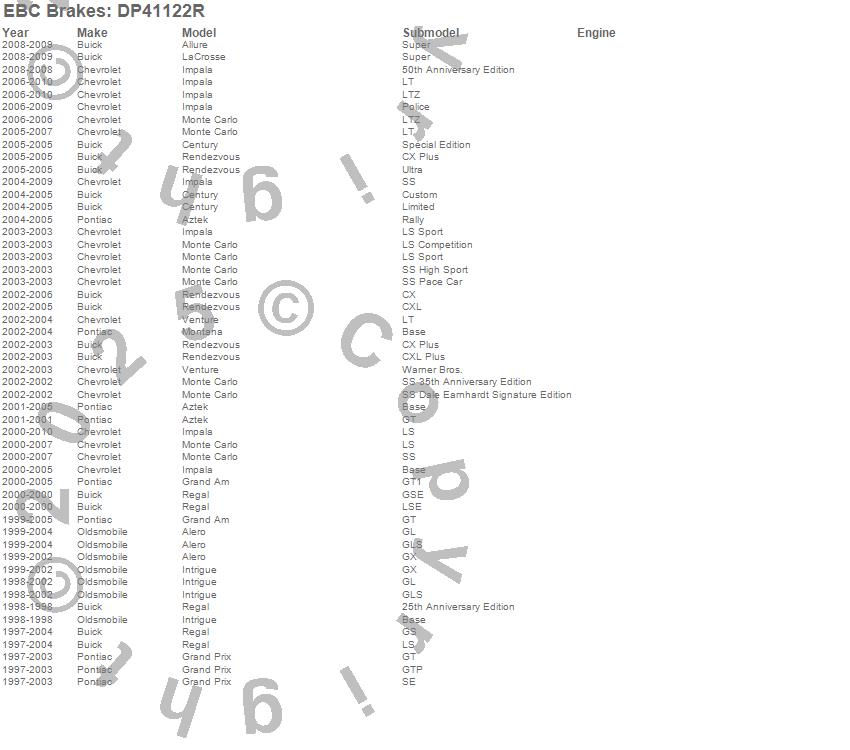 Alero, Allure, Aztek, Century, Grand Am, Grand Prix, Impala, Intrigue, LaCrosse, Montana, Monte Carlo, Regal, Rendezvous, Venture, Buick, Chevrolet, Oldsmobile, Pontiac, 2010, 2009 more…