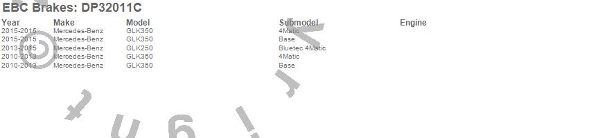 Below is an abreviated list of applications for the EBC Redstuff Ceramic Low Dust Brake Pads.