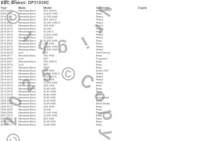 Below is an abreviated list of applications for the EBC Redstuff Ceramic Low Dust Brake Pads.