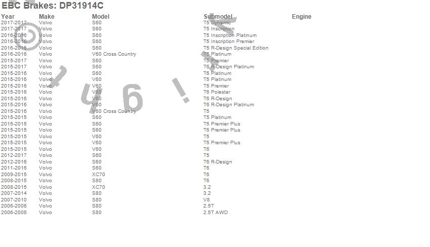 Below is an abreviated list of applications for the EBC Redstuff Ceramic Low Dust Brake Pads.