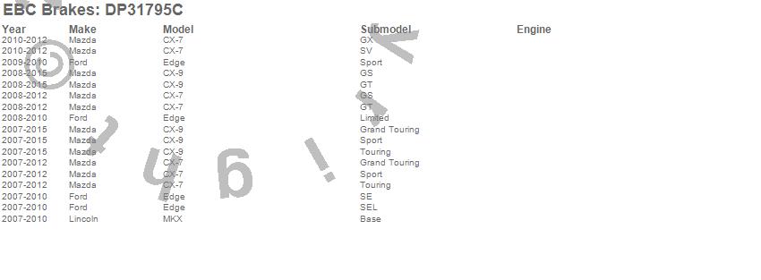 Below is an abreviated list of applications for the EBC Redstuff Ceramic Low Dust Brake Pads.