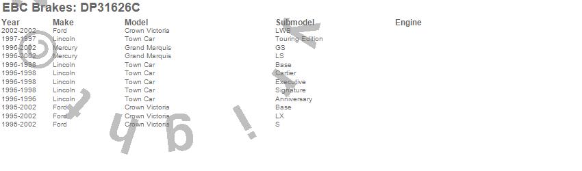 Below is an abreviated list of applications for the EBC Redstuff Ceramic Low Dust Brake Pads.