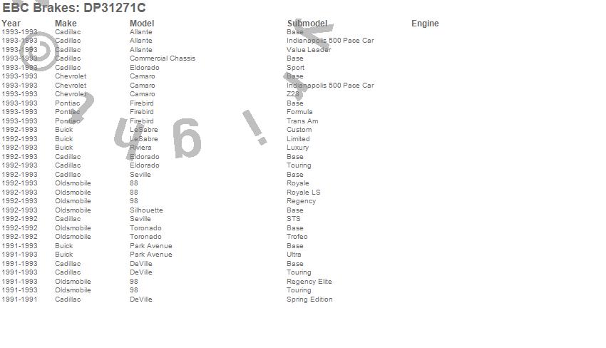 Below is an abreviated list of applications for the EBC Redstuff Ceramic Low Dust Brake Pads.