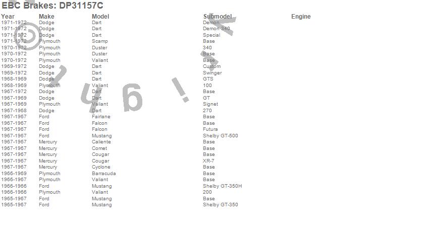 Below is an abreviated list of applications for the EBC Redstuff Ceramic Low Dust Brake Pads.