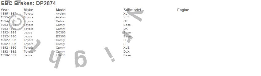 Below is an abreviated list of applications for the EBC Greenstuff 2000 Series Sport Brake Pads.