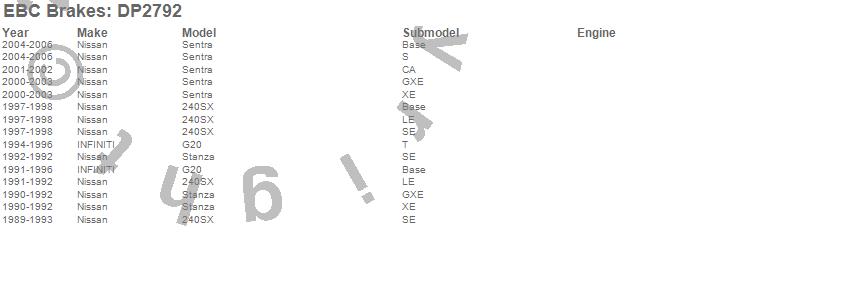 Below is an abreviated list of applications for the EBC Greenstuff 2000 Series Sport Brake Pads.