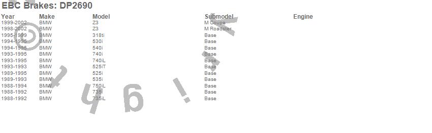 Below is an abreviated list of applications for the EBC Greenstuff 2000 Series Sport Brake Pads.
