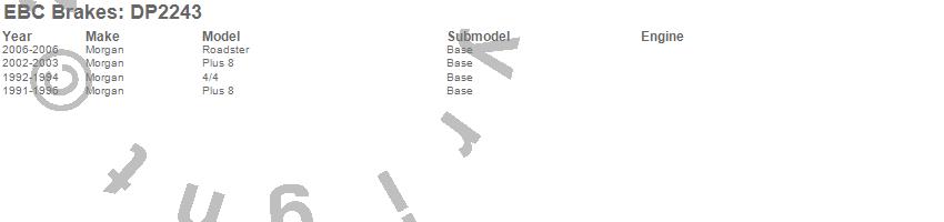 Below is an abreviated list of applications for the EBC Greenstuff 2000 Series Sport Brake Pads.
