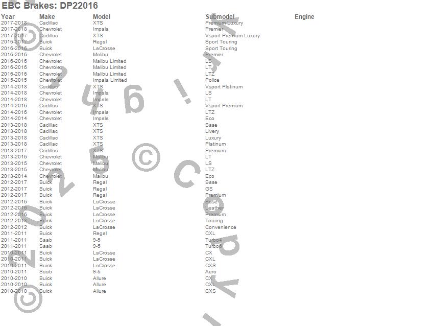 Below is an abreviated list of applications for the EBC Greenstuff 2000 Series Sport Brake Pads.