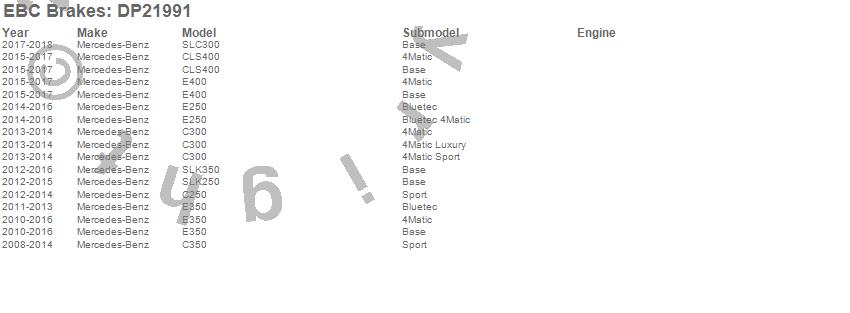 Below is an abreviated list of applications for the EBC Greenstuff 2000 Series Sport Brake Pads.