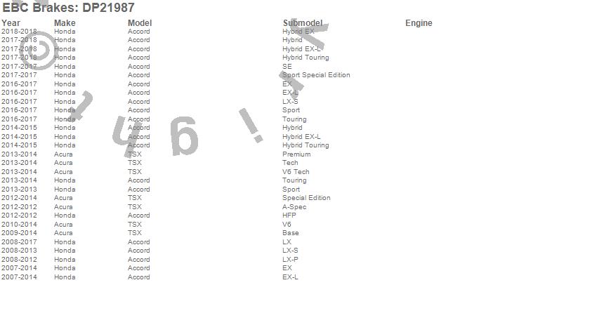 Below is an abreviated list of applications for the EBC Greenstuff 2000 Series Sport Brake Pads.