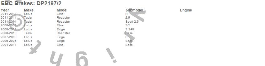 Below is an abreviated list of applications for the EBC Greenstuff 2000 Series Sport Brake Pads.