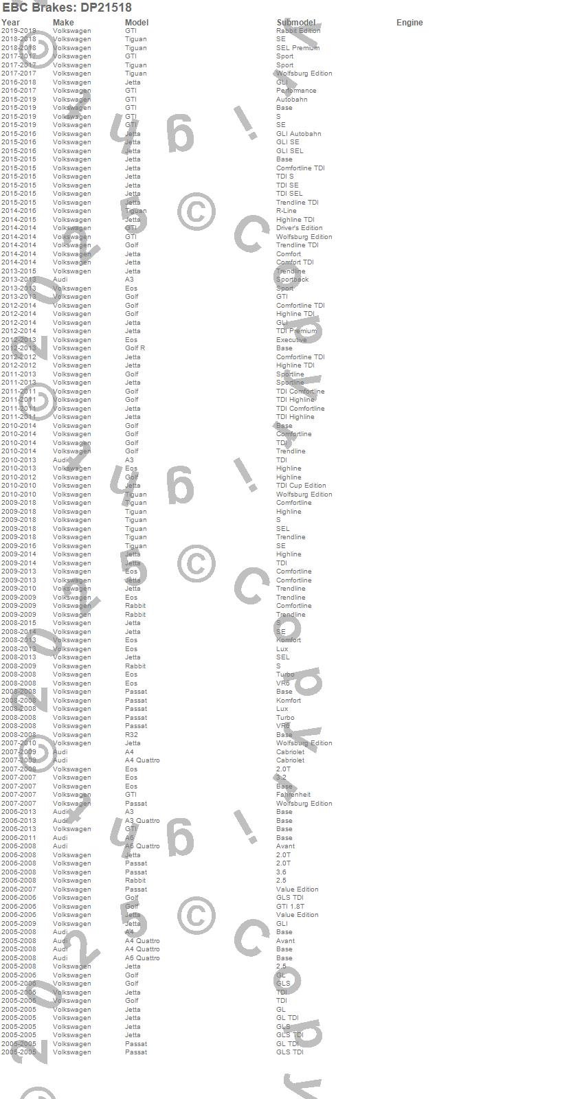 Below is an abreviated list of applications for the EBC Greenstuff 2000 Series Sport Brake Pads.