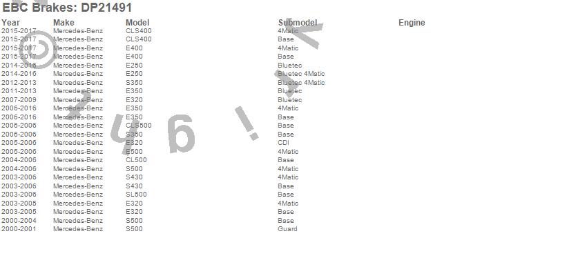 Below is an abreviated list of applications for the EBC Greenstuff 2000 Series Sport Brake Pads.