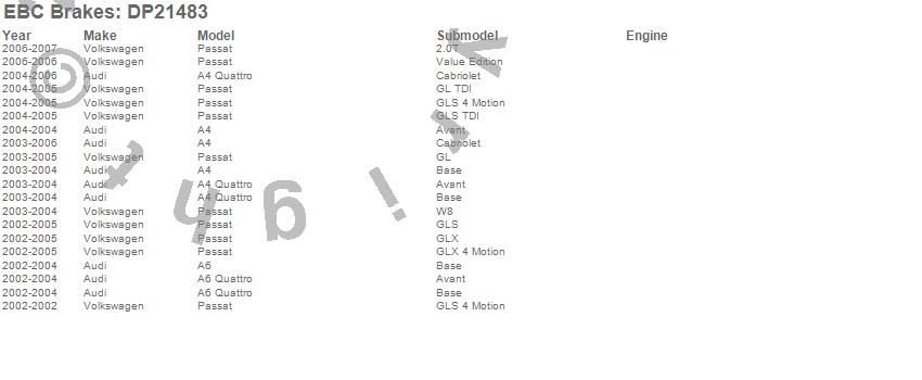 Below is an abreviated list of applications for the EBC Greenstuff 2000 Series Sport Brake Pads.