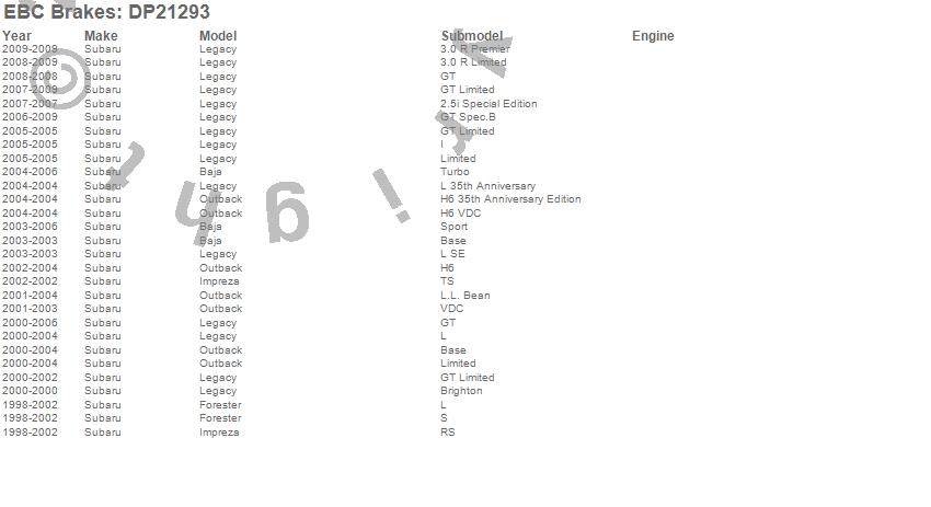 Below is an abreviated list of applications for the EBC Greenstuff 2000 Series Sport Brake Pads.