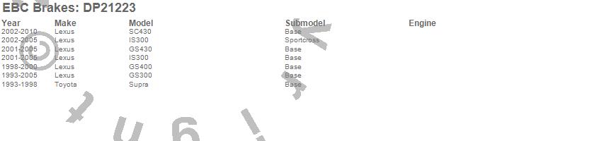 Below is an abreviated list of applications for the EBC Greenstuff 2000 Series Sport Brake Pads.