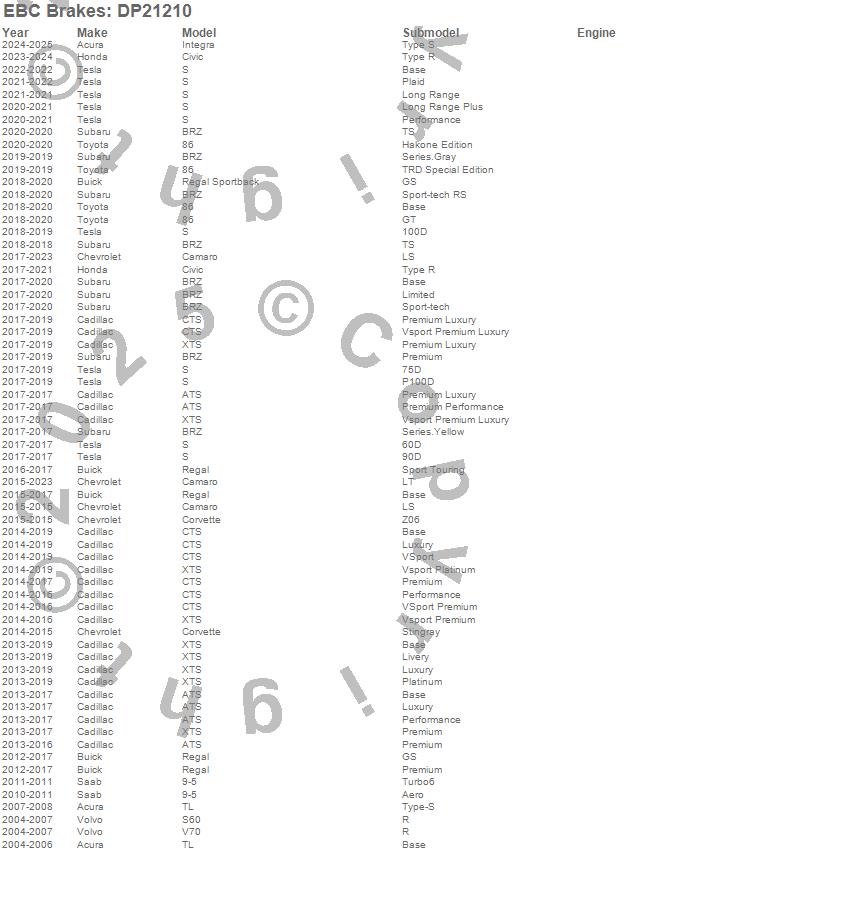 Below is an abreviated list of applications for the EBC Greenstuff 2000 Series Sport Brake Pads.