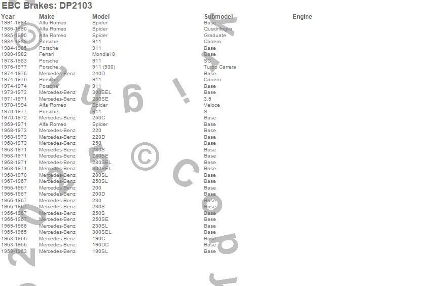 Below is an abreviated list of applications for the EBC Greenstuff 2000 Series Sport Brake Pads.