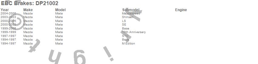 Below is an abreviated list of applications for the EBC Greenstuff 2000 Series Sport Brake Pads.
