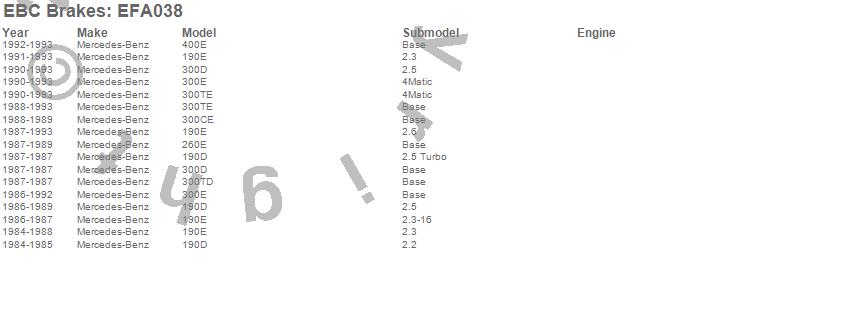 Below is an abreviated list of applications for the EBC Brake Wear Lead Sensor Kit. 190D, 190E, 260E, 300CE, 300D, 300DT, 300E, 300TD, 300TE, 400E, Mercedes-Benz, 1993, 1992, 1991, 1990, 1989, 1988, 1987, 1986, 1985 more…