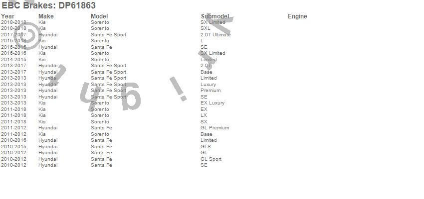 Below is an abreviated list of applications for the EBC 6000 Series Greenstuff Truck/SUV Brakes Disc Pads.