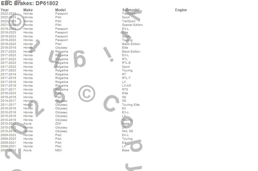 Below is an abreviated list of applications for the EBC 6000 Series Greenstuff Truck/SUV Brakes Disc Pads.