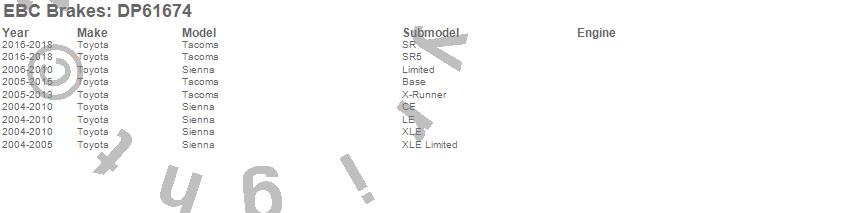 Below is an abreviated list of applications for the EBC 6000 Series Greenstuff Truck/SUV Brakes Disc Pads.