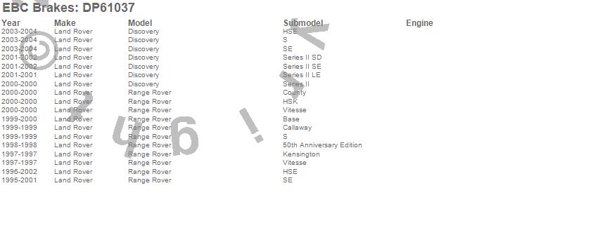 Below is an abreviated list of applications for the EBC 6000 Series Greenstuff Truck/SUV Brakes Disc Pads.