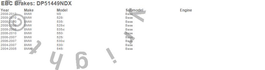 Below is an abreviated list of applications for the EBC Bluestuff NDX Full Race Brake Pads.
