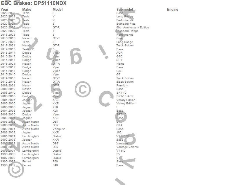 Below is an abreviated list of applications for the EBC Bluestuff NDX Full Race Brake Pads.