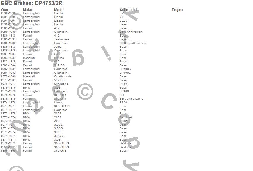 365 GT4, 365 GT4 BB, 365 GTB/4, 365 GTS/4, 400i, 412, 412i, 512 BB, 512 BBI, Biturbo, Countach, Diablo, GTO, Jalpa, Testarossa, Urraco, Ferrari, Lamborghini, Maserati, 1996 more…