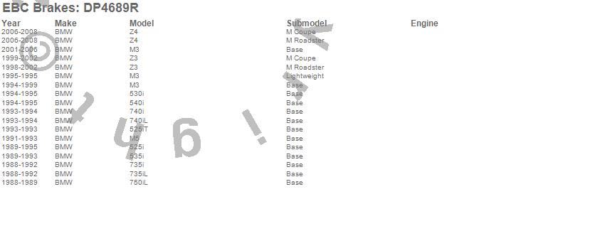 Below is an abreviated list of applications for the Yellowstuff Street And Track Brake Pads. 525i, 525iT, 530i, 535i, 540i, 735i, 735iL, 740i, 740iL, 750iL, M3, M5, Z3, Z4, BMW, 2008, 2007, 2006, 2005, 2004 more…