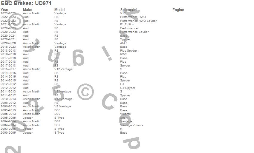 Below is an abreviated list of applications for the EBC Ultimax OEM Replacement Brake Pads.