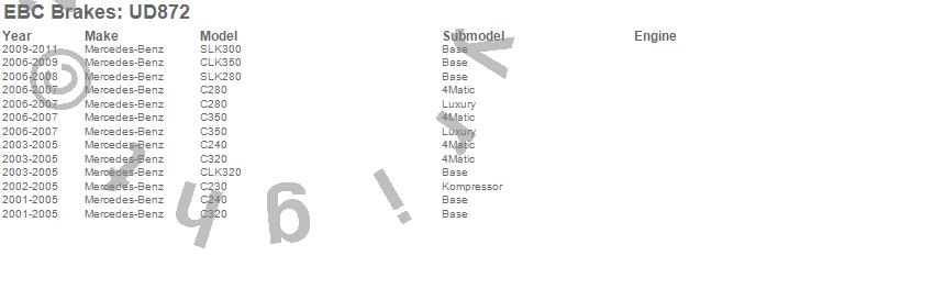 Below is an abreviated list of applications for the EBC Ultimax OEM Replacement Brake Pads. C230, C240, C280, C320, C350, CLK320, CLK350, SLK280, SLK300, Mercedes-Benz, 2011, 2010, 2009, 2008, 2007, 2006, 2005, 2004, 2003, 2002 more…
