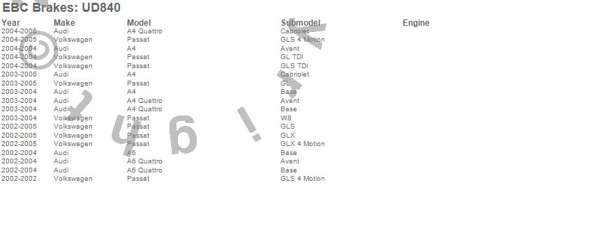 Below is an abreviated list of applications for the EBC Ultimax OEM Replacement Brake Pads.