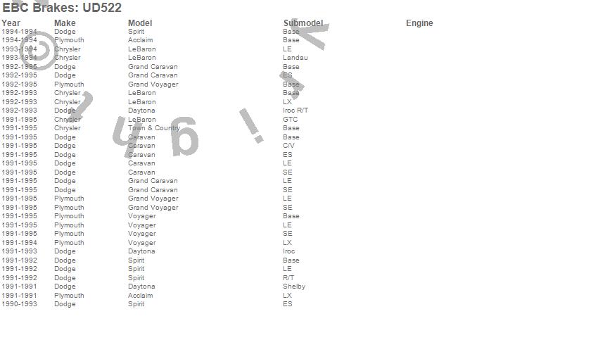 Below is an abreviated list of applications for the EBC Ultimax OEM Replacement Brake Pads.