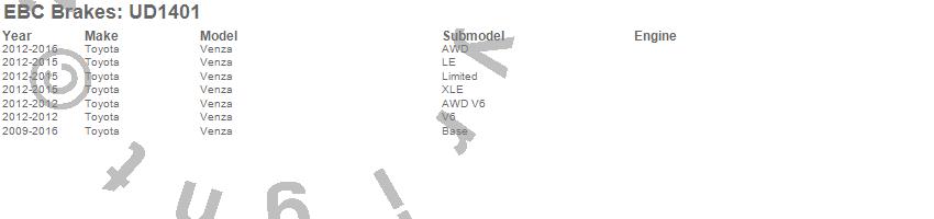 Below is an abreviated list of applications for the EBC Ultimax OEM Replacement Brake Pads.
