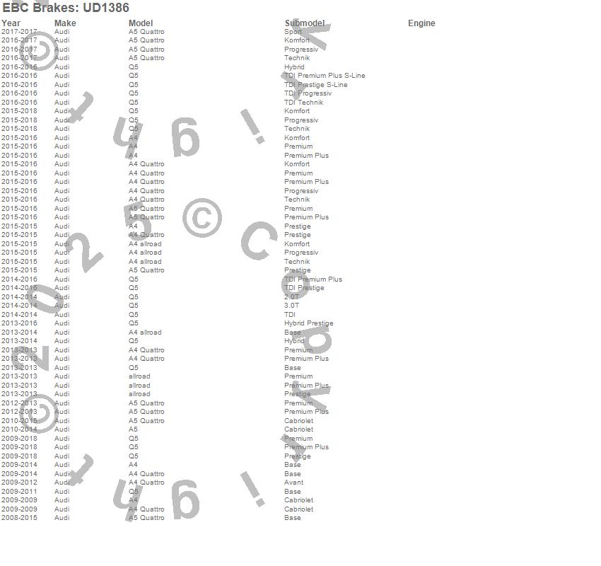 Below is an abreviated list of applications for the EBC Ultimax OEM Replacement Brake Pads. A4, A4 allroad, A4 Quattro, A5, A5 Quattro, allroad, Q5, Audi, 2016, 2015, 2014, 2013, 2012, 2011, 2010, 2009, 2008 more…