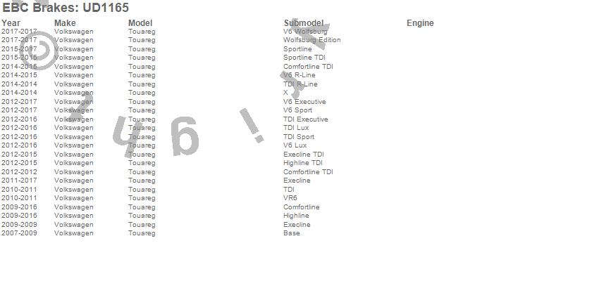 Below is an abreviated list of applications for the EBC Ultimax OEM Replacement Brake Pads.