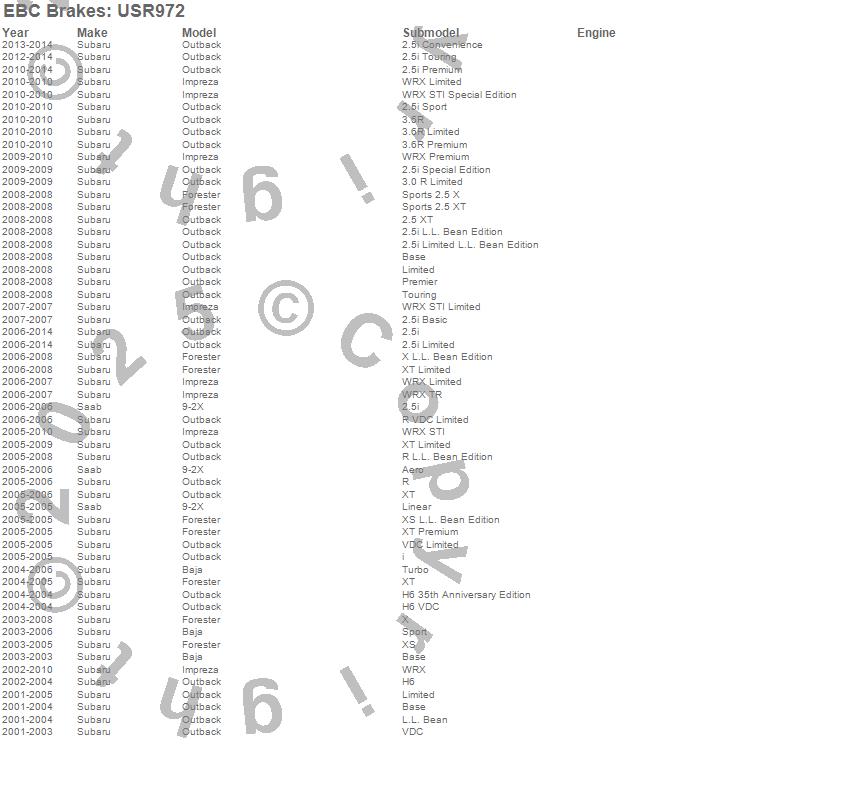 Below is an abreviated list of applications for the EBC USR Series Sport Slotted Rotor.